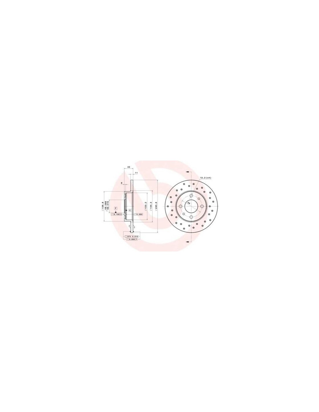 Juego 2 discos freno Seat 600 Seat 850 Seat127 Seat 133 perforados. Marca Brembo