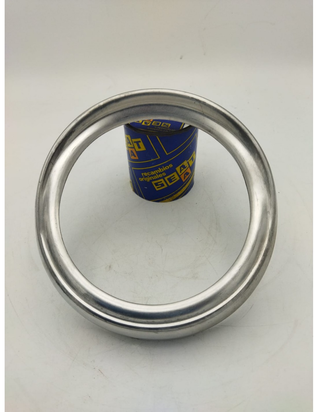 Cerquillo Bisel de faro SEAT 600 D 2ª Serie con visera, desde BA315101. Repuesto original de época.
