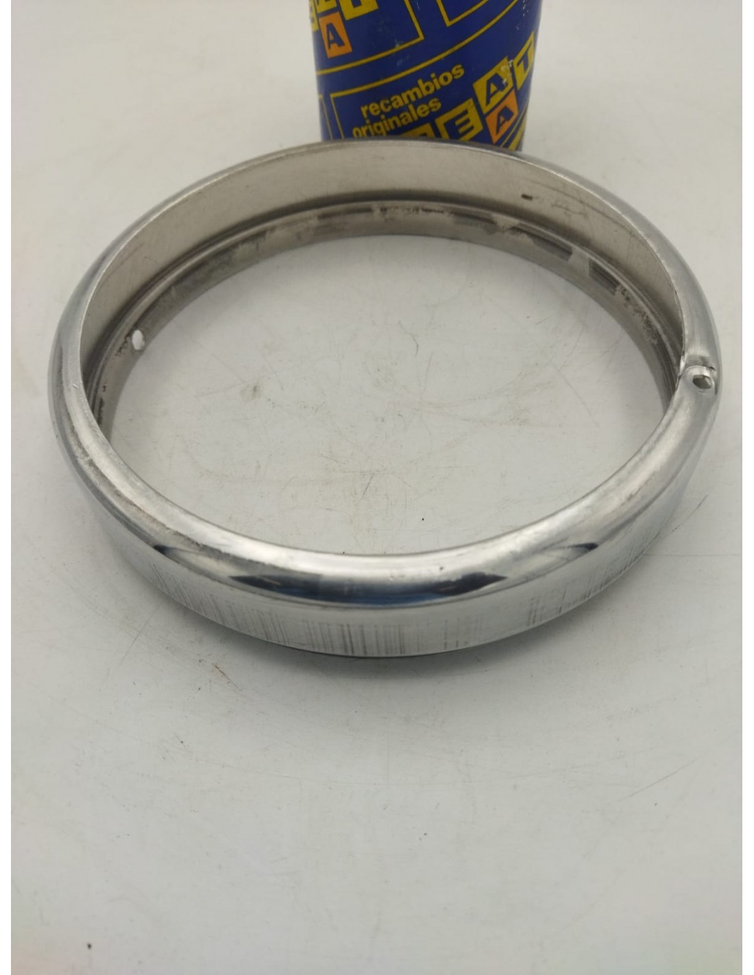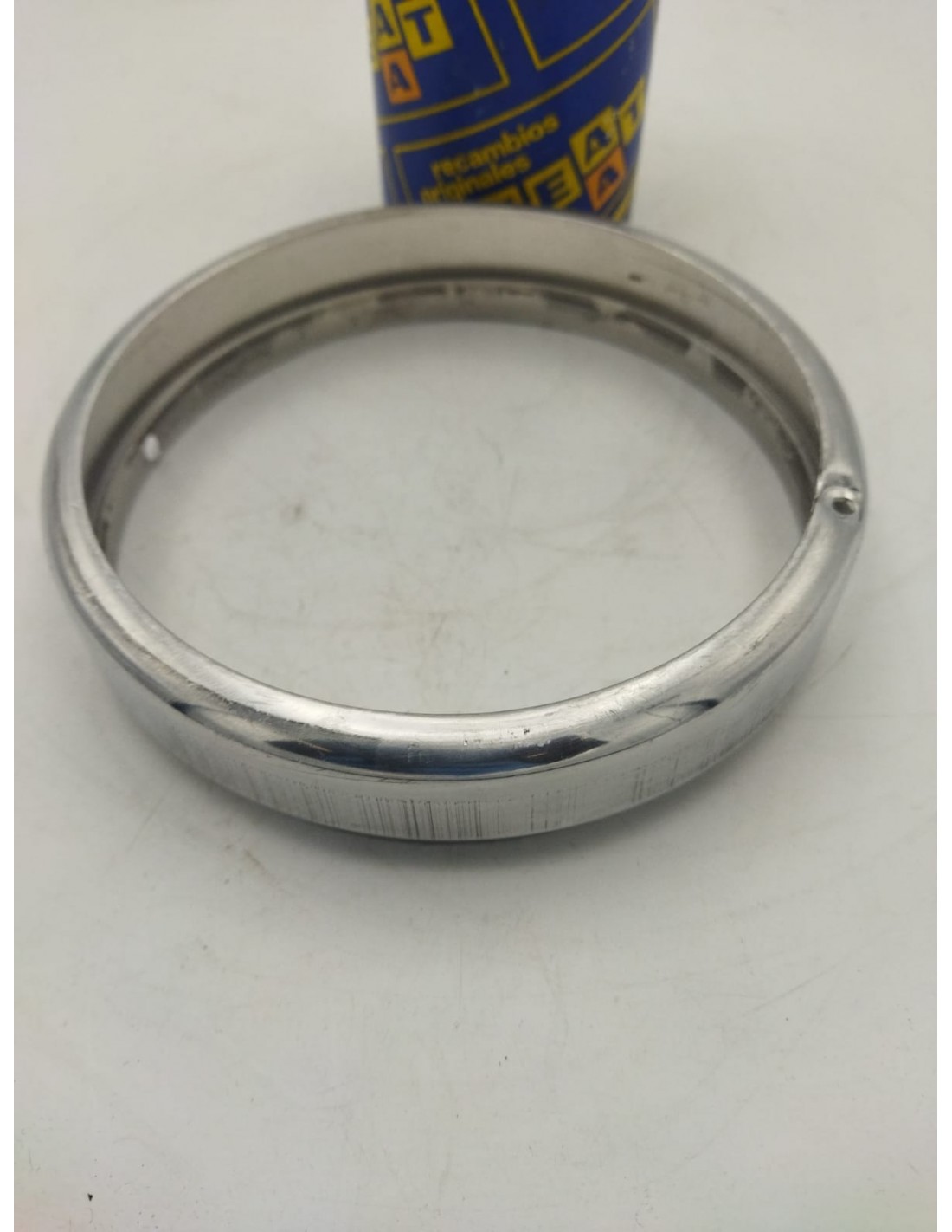 Cerquillo exterior de faro SEAT 600 D 1ª Serie, hasta VIN BA-279899 con depósito cuadrado. Repuesto original de época