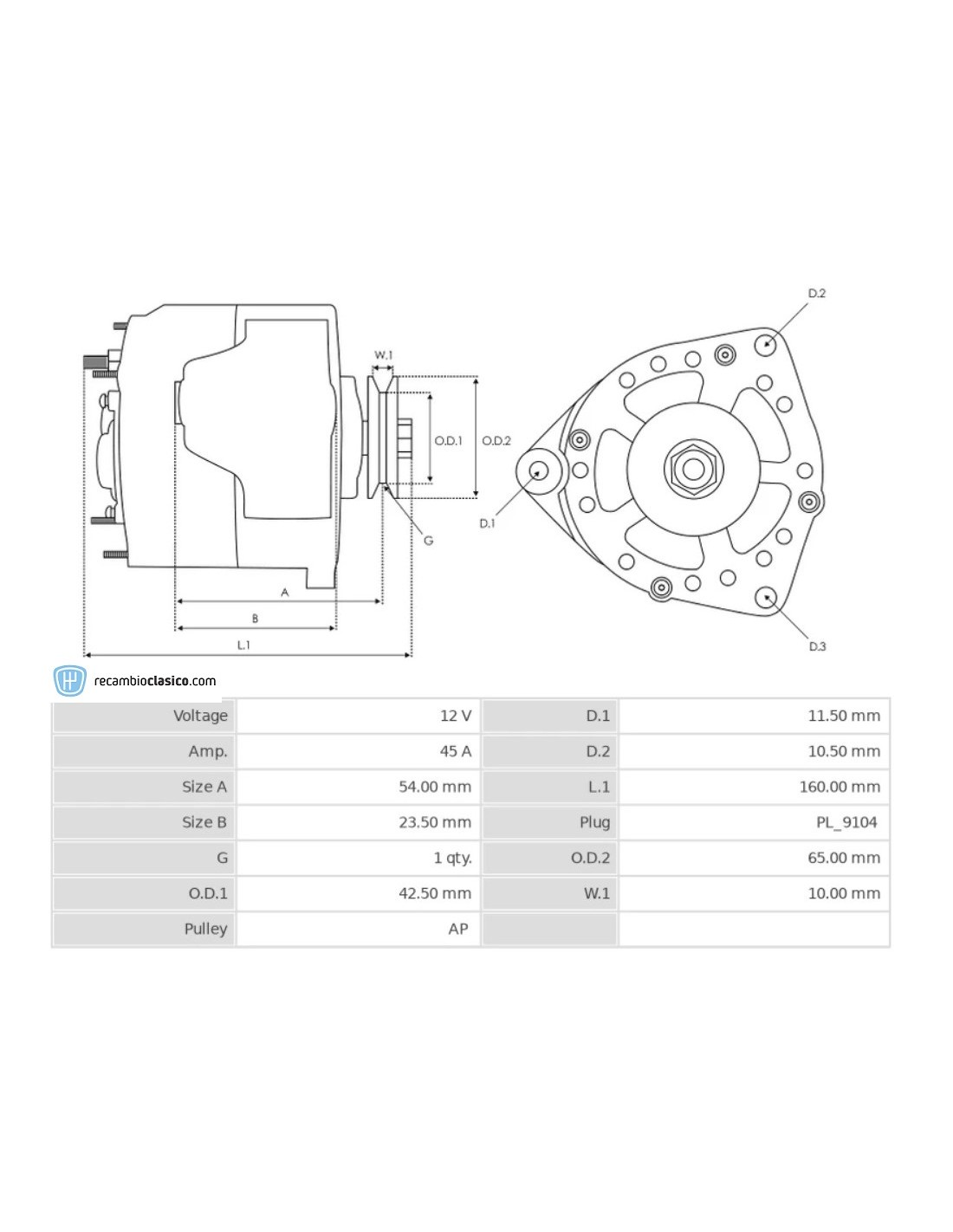 Alternador 12V 45A SEAT 127 0.9, SEAT Panda 45, SEAT Trans, SEAT Fura 0.9, SEAT Fura CRONO, SEAT Marbella SEAT Terra 4242498, 4274759, 4274762