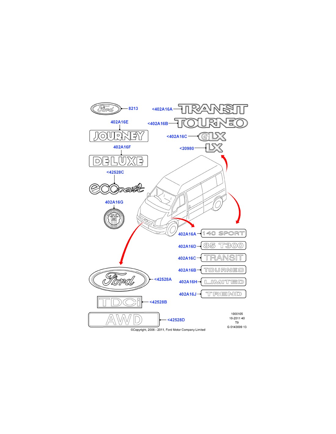 Emblema rejilla Ford Transit MK3 2112336