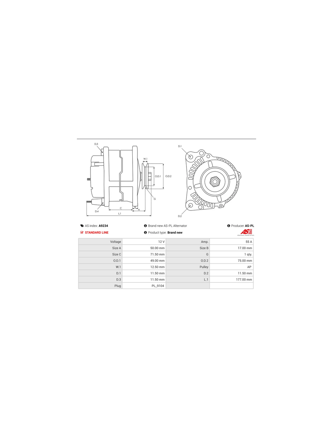 Alternador 12V 55A SEAT Marbella 899 CAT, OEM: 4808511, 4808505, 4721589